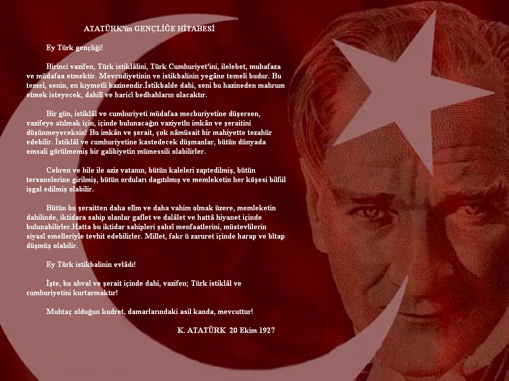 Hepimiz ülke olarak en önemli günlerimizde Önderimiz Mustafa Kemal Atatürk’ü anıyoruz; sevgiyle, hasretle… Bundan hepimiz mutluluk duyuyoruz. Ancak abartanlara, “Neredesin Atam?”, “Bir Kubilay için ‘Yakın Menemen’i diyen Atatürk’ü özledim” diyenlere söyleyeceklerim var; şuanda Atatürk aramızda olsa bu ülkeden ilk sizi kovardı bundan emin olun. Bu mu Atatürk gençliğiniz, ileri görüşlülüğünüz, azminiz, damarlarınızdaki asil kan bu mu? O görevini layıkıyla, fazlasıyla yaptı ve hakkın rahmetine kavuştu. Giderken hayatını feda ettiği ülkeyi bizlere, gençlere teslim etti. Karşılığında yakınmalı mıyız, hala neredesin çık gel nidaları ile çınlatmalı mıyız dört bir yanı? Bu kadar aciz miyiz?